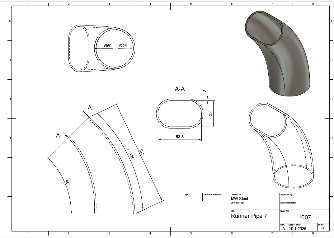Runneri eli johdinputki imusarjan laipan ja painekotelon väliin (turboahdetut moottorit) tai läppärunkoihin (vapaasti hengittävät moottorit). Liitos tehdään hitsaamalla.